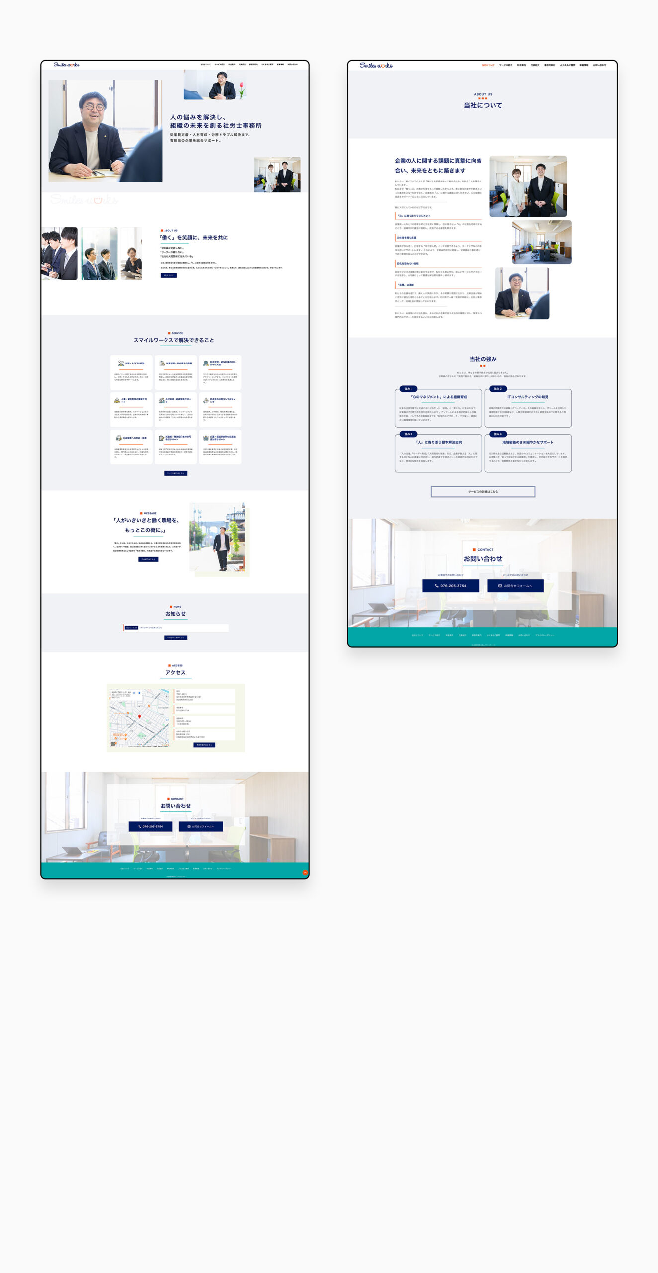 デザインでは「マインド系社労士」を掲げるにあたり、配色・写真選定・余白設計を丁寧に調整し、法人としての格を保ちつつ、人のあたたかさを感じさせるトーンに仕上げました。
